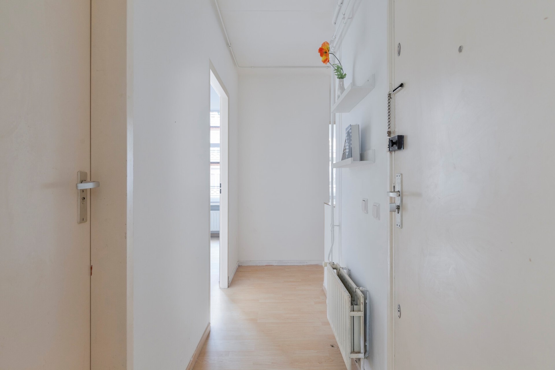 De hal biedt toegang tot alle vertrekken. Aan de rechterzijde bevinden zich de twee ruime slaapkamers, beide met veel lichtinval.