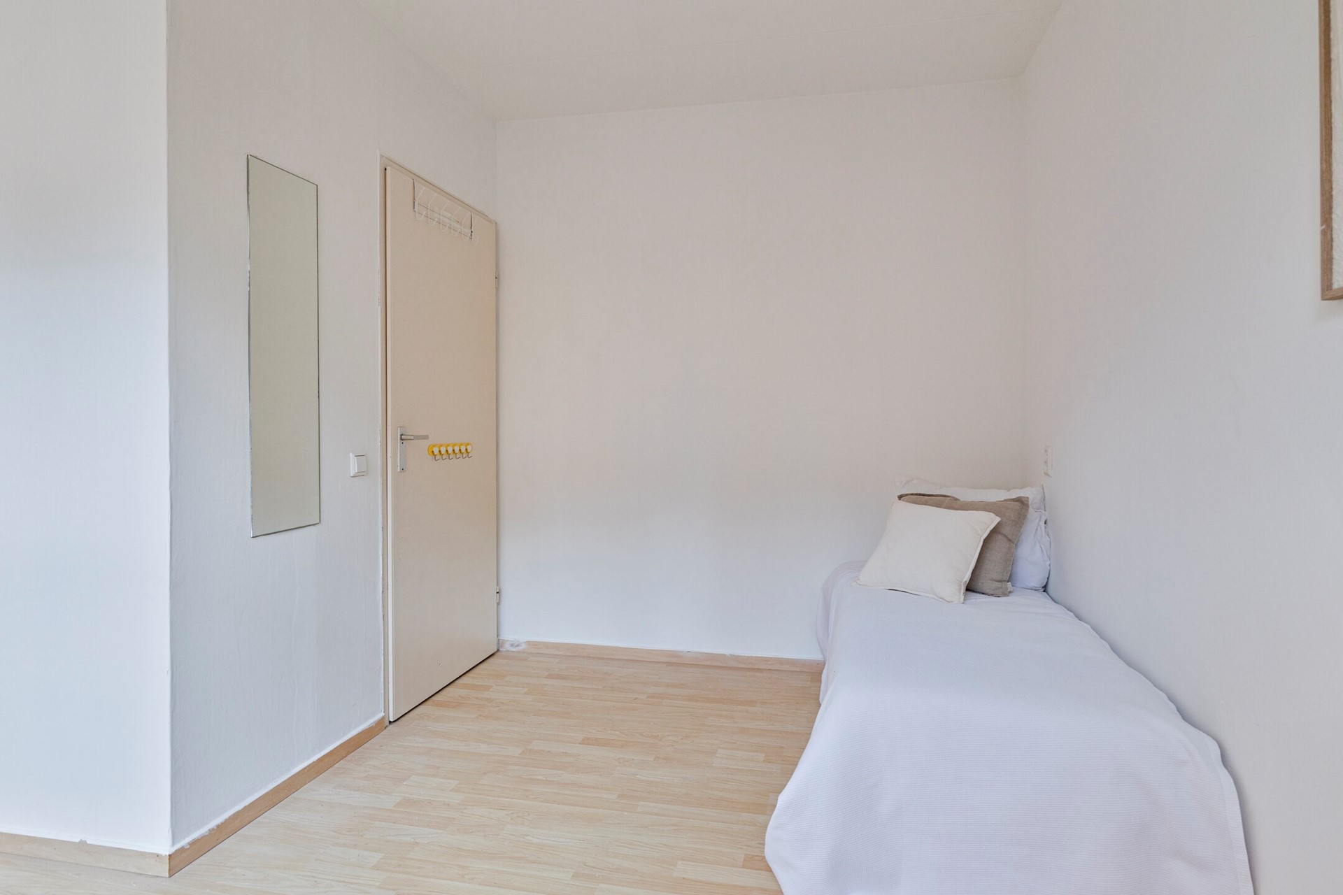 The hall provides access to all rooms. On the right side are the two spacious bedrooms, both with lots of light.